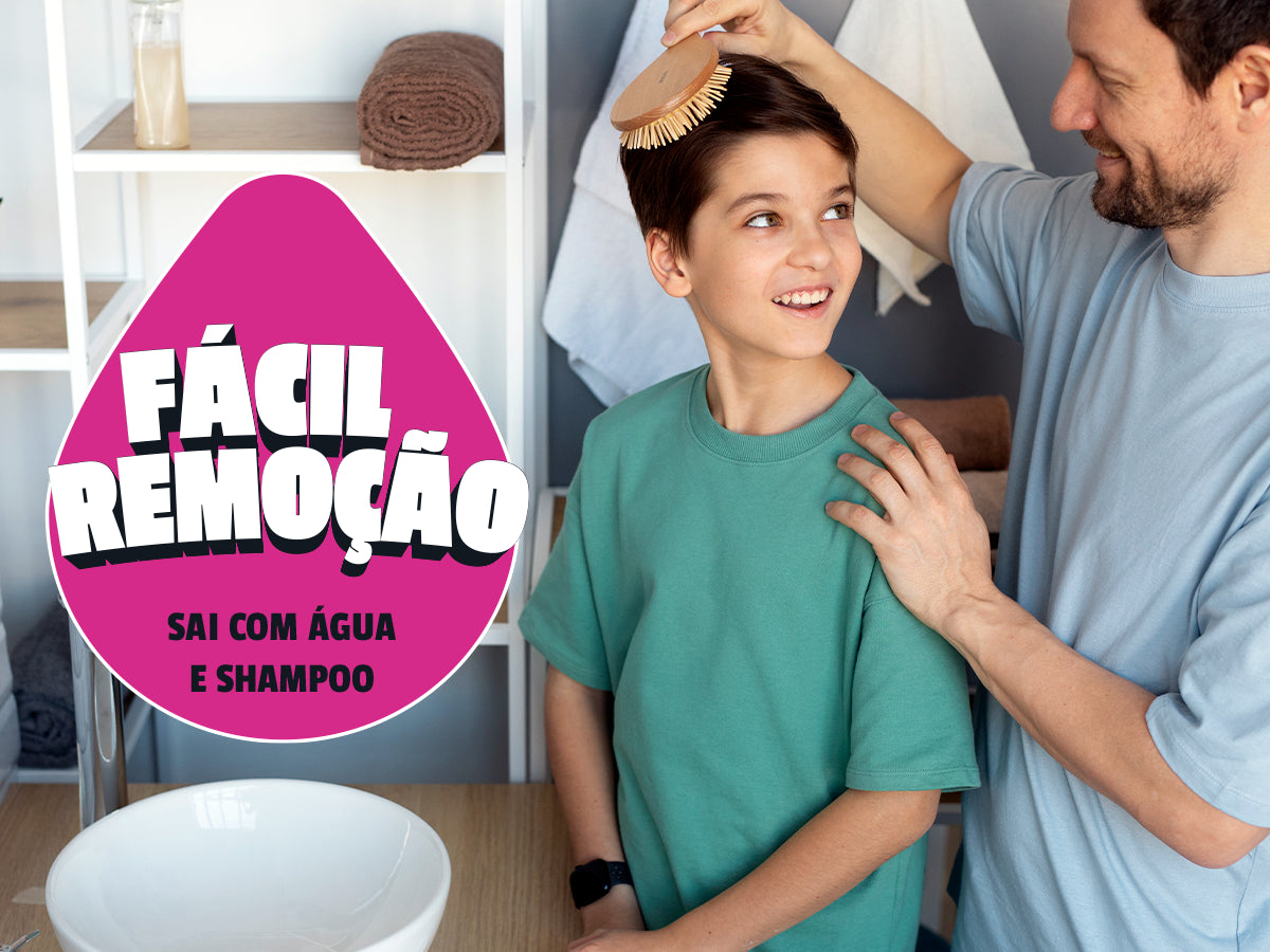 Após curtir e brincar o dia todo com o seu visual incrível, chegou a hora de removê-lo. É muito fácil! Basta lavar os cabelos com água em abundância e shampoo. Pronto! O produto será completamente removido com muita facilidade.